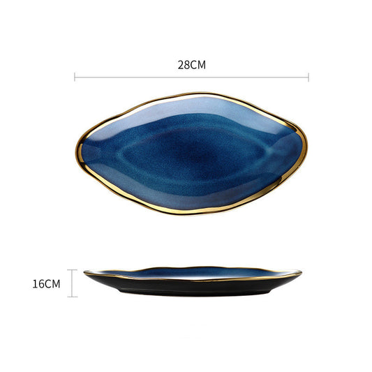 Nordic Blue Ceramic Steak Western Plate Tableware
