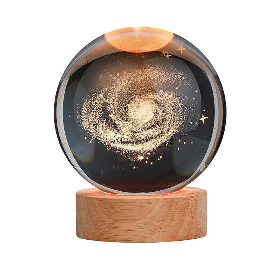 Crystal Ball Lamp with Wooden Base for Beside Table USB-Rechargeable