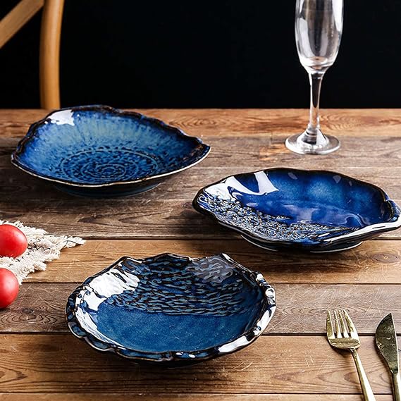 Beautifully abstract, our new Rising Tide Contemporary Plates feature fire-hardened ceramic and a sparkling, multicolor blue gloss finish. Not for the feint of heart, these one of a kind plates give your dinner setting a dose of art and playful mystery.