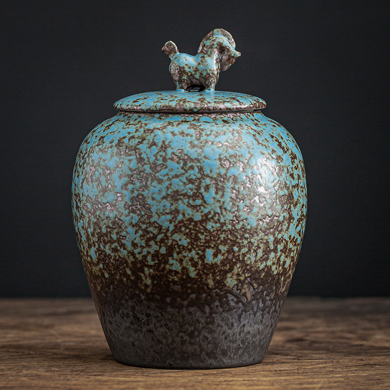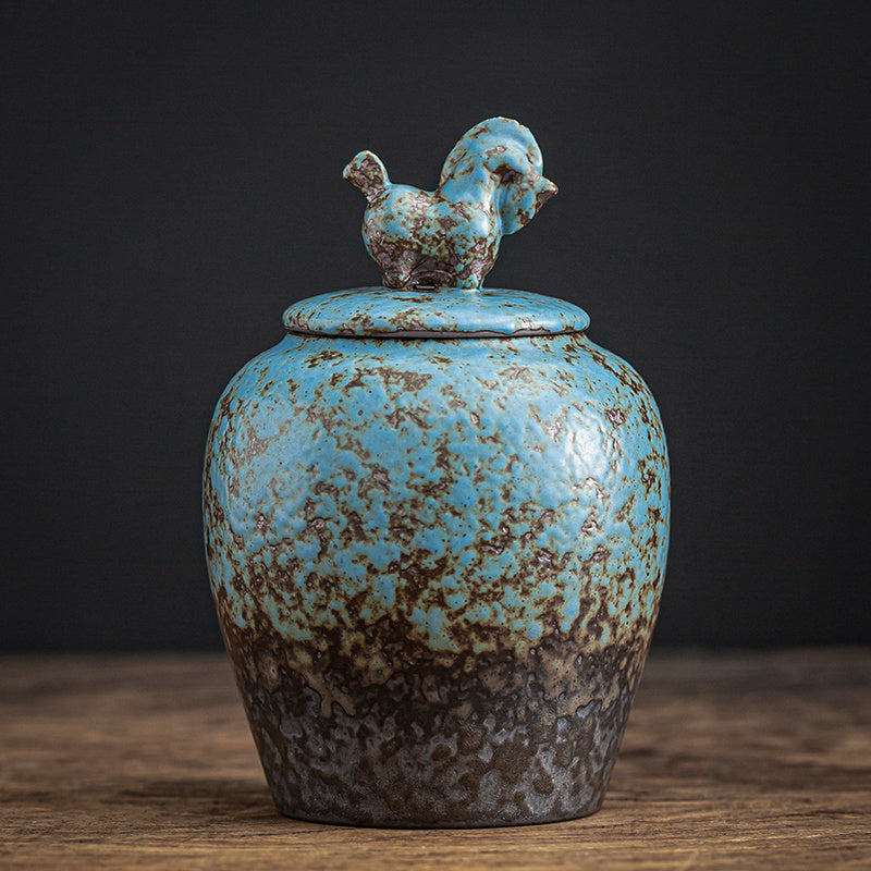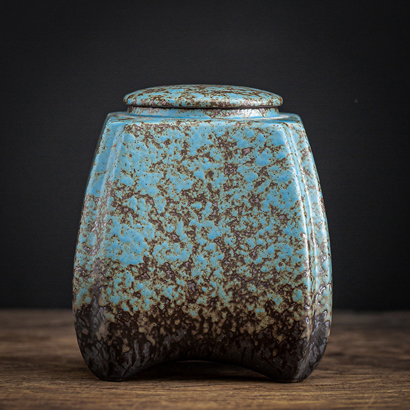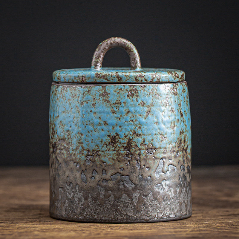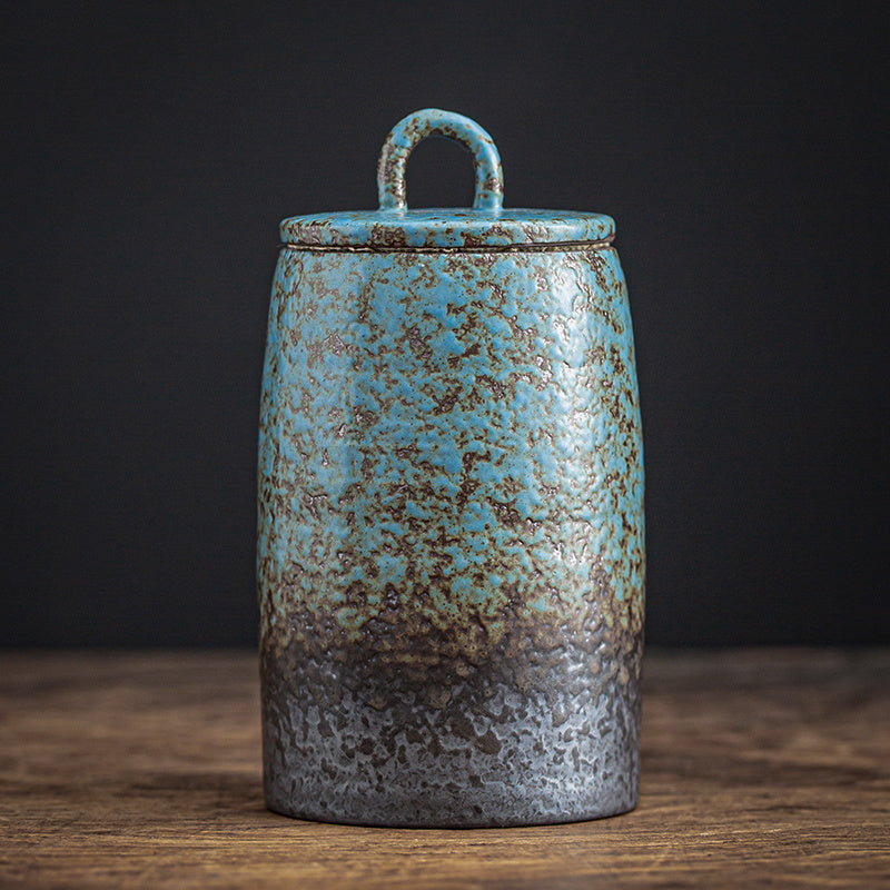 Home Ceramic Kiln Turns Blue Tea Caddy