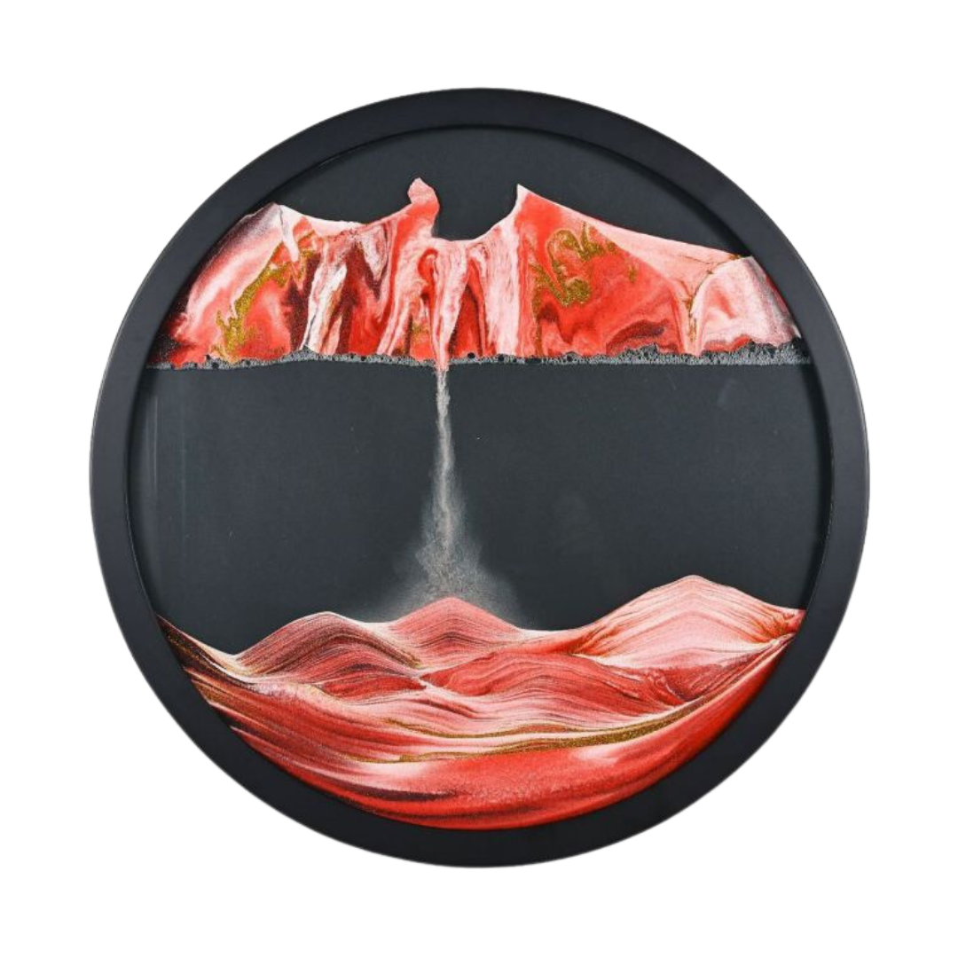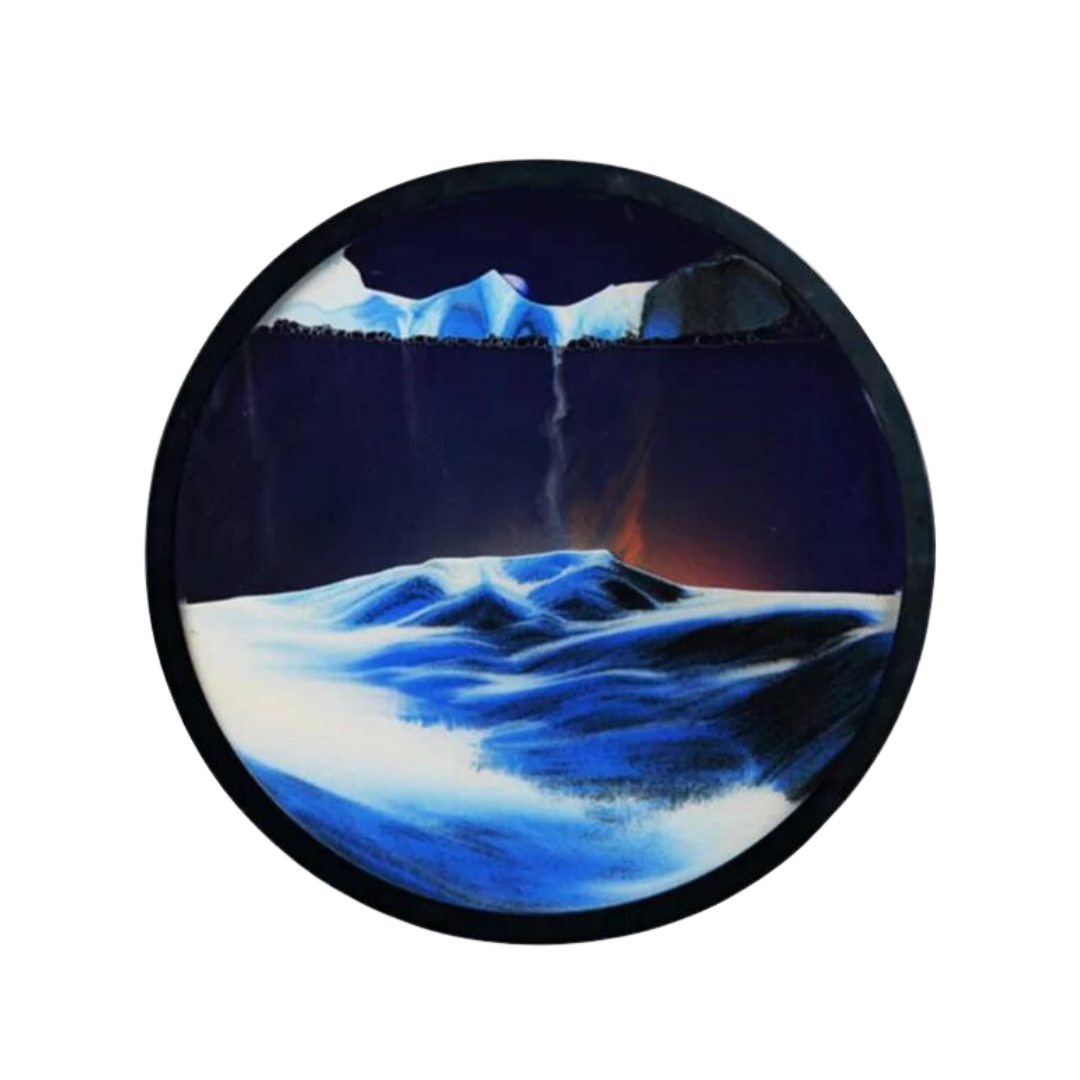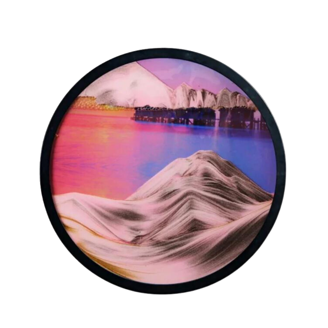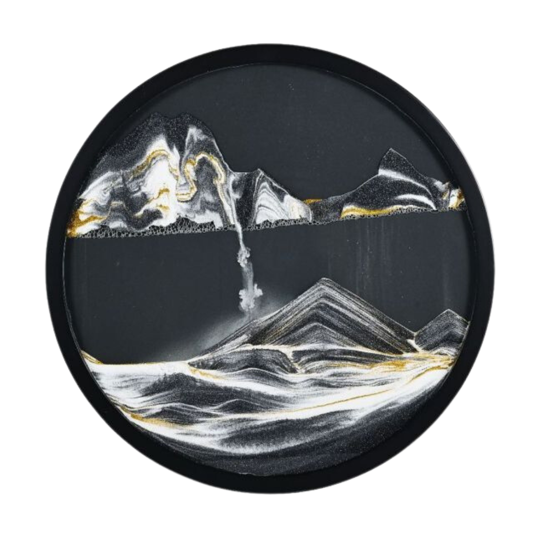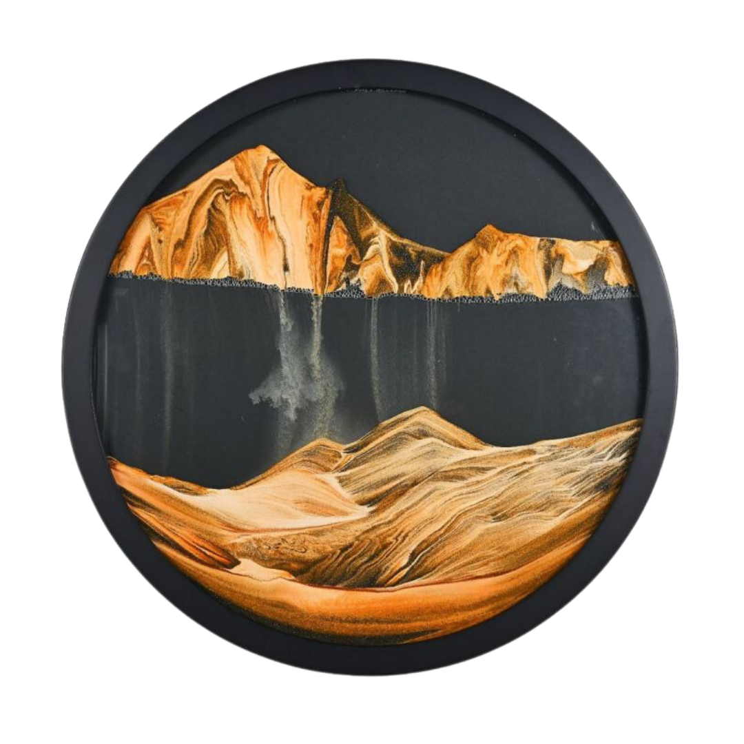 Chacune de nos pièces combine de magnifiques motifs d'art sur sable avec le calme du sable qui coule.
