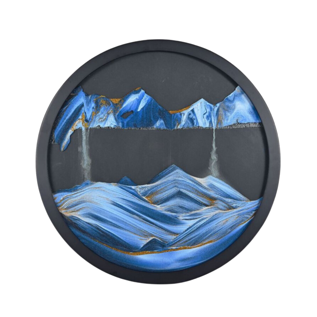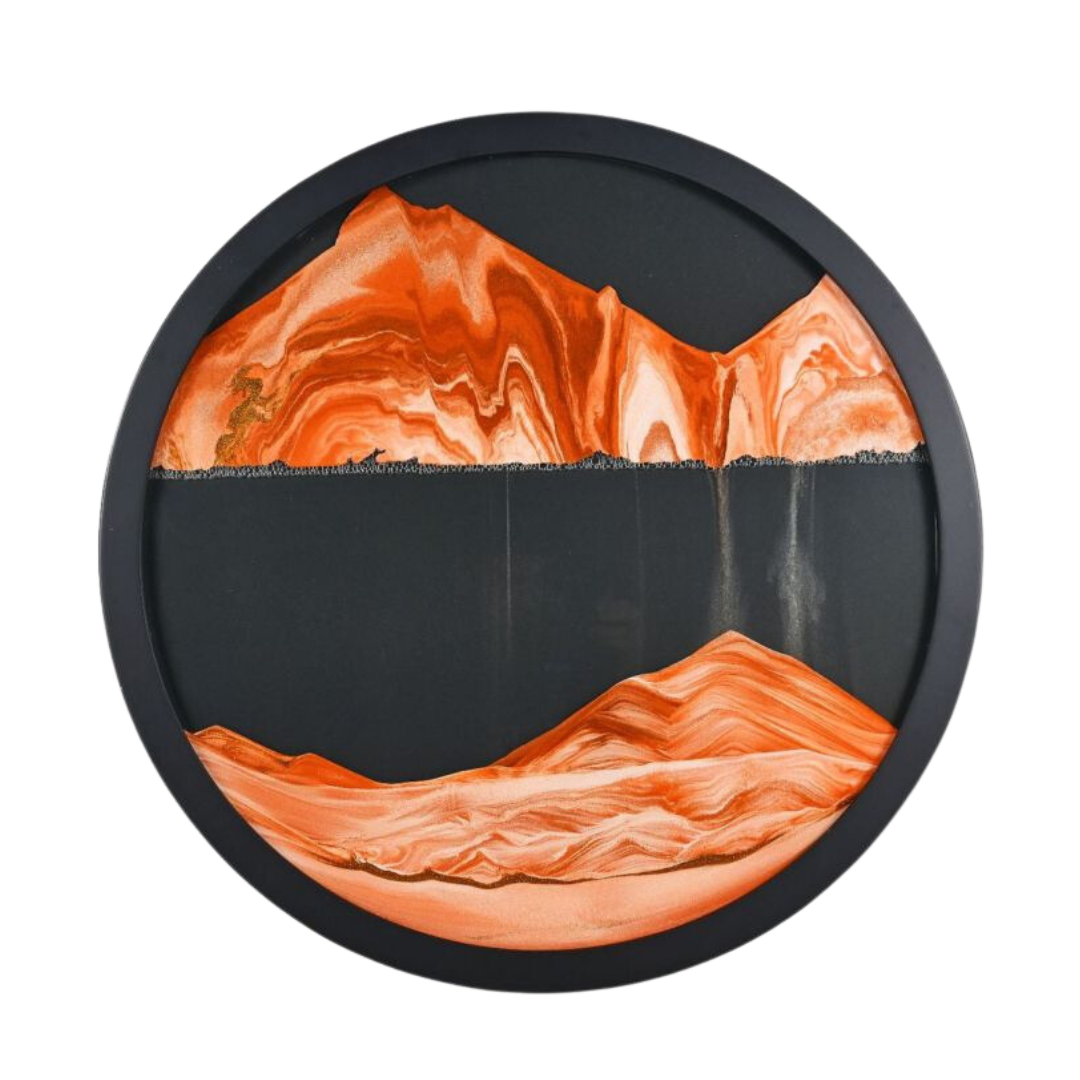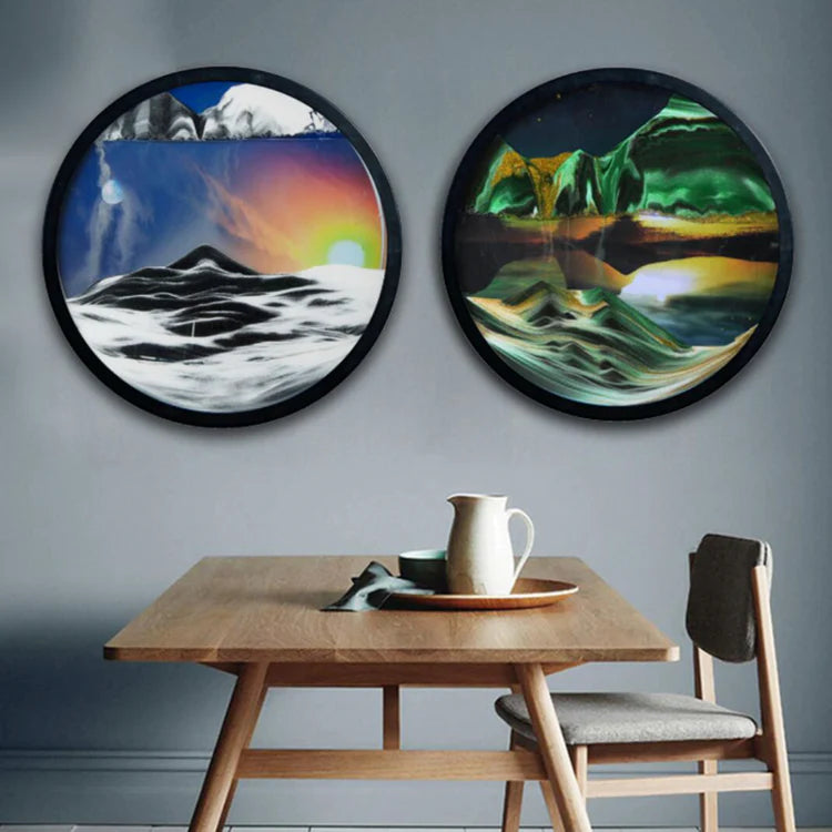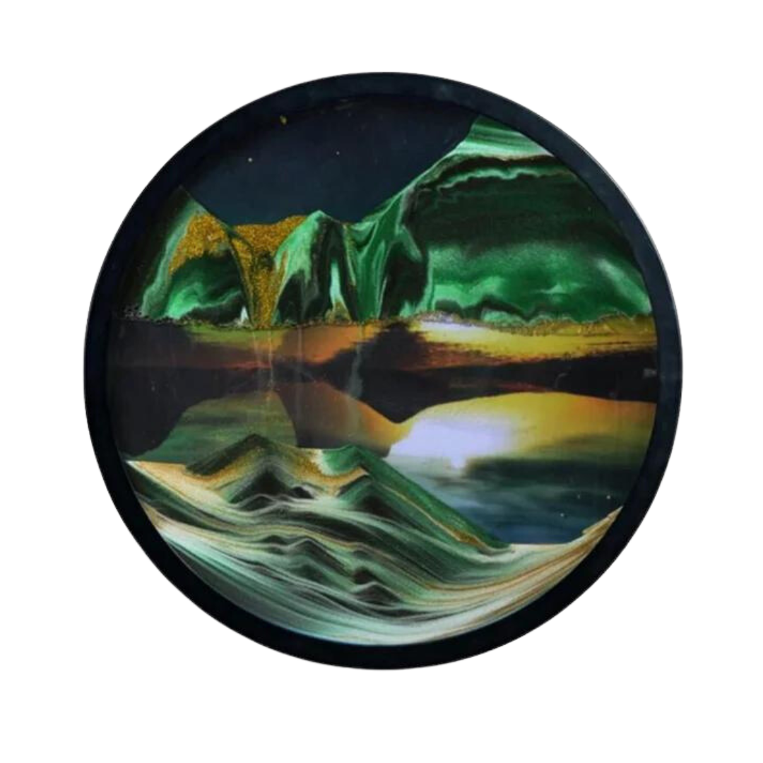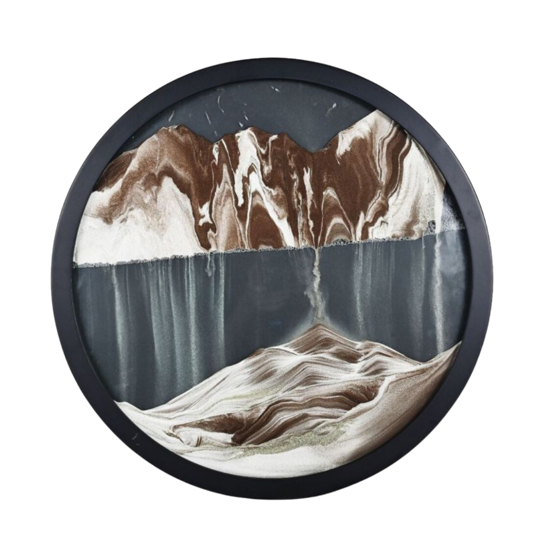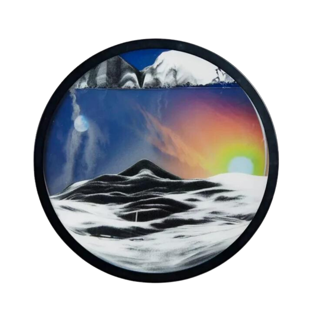 Chacune de nos pièces combine de magnifiques motifs d'art sur sable avec le calme du sable qui coule.