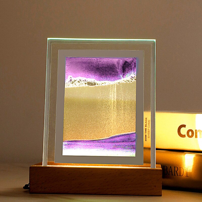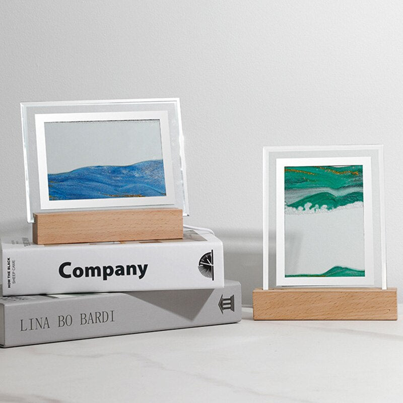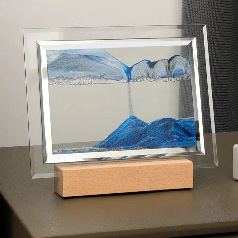 Chacune de nos pièces combine de magnifiques motifs d'art sur sable avec le calme du sable qui coule.